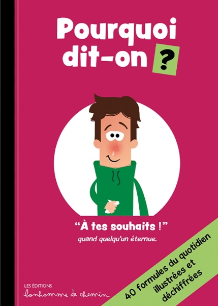 Pourquoi dit-on “Poisson d’avril”, “pique-niquer”, “être canon”, “merde” pour souhaiter bonne chance ou que le nombre 13 porte bonheur ? D’où viennent les termes “sage-femme”, “baccalauréat”, “chocolatine”, “daron”, “OK” ou encore “sapeur-pompier” ? Derrière nos formules les plus anodines se cachent des histoires étonnantes et des détours linguistiques croustillants. Instructif et savoureux, ce petit guide invite les enfants à déchiffrer l’origine de ces fameuses expressions et les secrets de nos mots du quotidien. Chaque mot, chaque expression sont accompagnés d’illustrations amusantes qui facilitent l’éclairage et l’apprentissage. Un livre idéal pour “épater la galerie” !