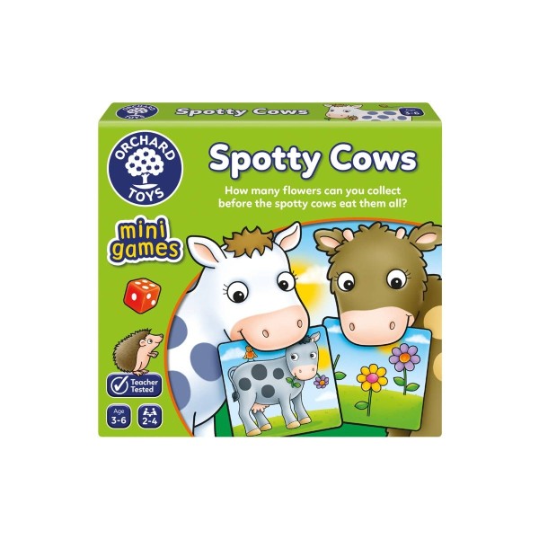 How many flowers can you collect before the spotty cows eat them all? A fun and simple game that helps develop counting, matching and turn-taking skills Players roll the dice, match the number of spots on the cows and turn over the cards to reveal the number of flowers Features bright, engaging illustrations that children will love Small, compact and portable, making it a perfect travel game Suitable for ages 3-6 Perfect birthday gift for farm fans!